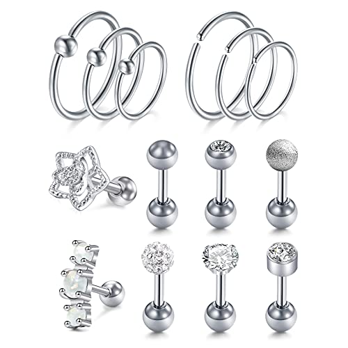 D.Bella Piercing Orecchio Set Orecchini Creoli Signore 16G acciaio chirurgico elica Conch Piercing Anello CZ Tragus Plug Orecchio Cartilagine Piercing Gioielli