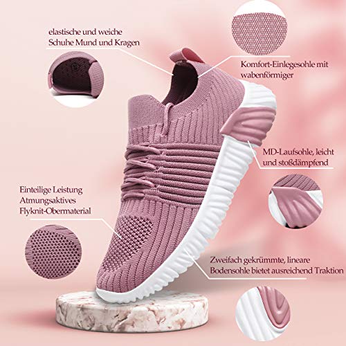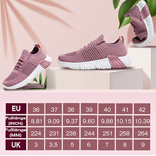 Bella Bays Scarpe da ginnastica da donna, leggere, traspiranti, morbide, casual, scarpe da corsa, scarpe da trekking, bianco, nero, rosa, 36-42, Colore: rosa., 36 EU