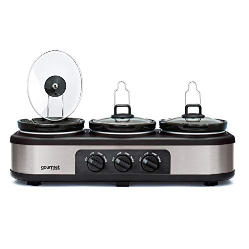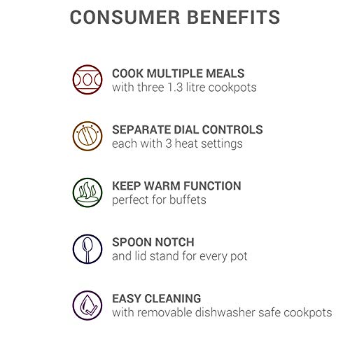 Bella Cook & Serve 3 Pot Slow Cooker With Keep Warm Buffet Setting by Bella