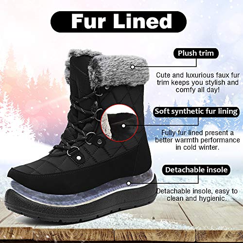 Bella Bays Stivali da neve da donna, impermeabili, antiscivolo, foderati in pelliccia, caldi, invernali, invernali, scarpe termiche da camminata all'aperto, con lacci, nero/grigio/rosso, Nero, 41 EU