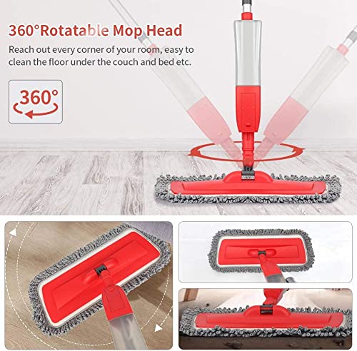 Bellababy - Lava pavimenti con funzione spray, 3 panni e tergivetro per finestre, mocio rotante a 360 gradi con serbatoio dell'acqua da 450 ml, colore: rosso
