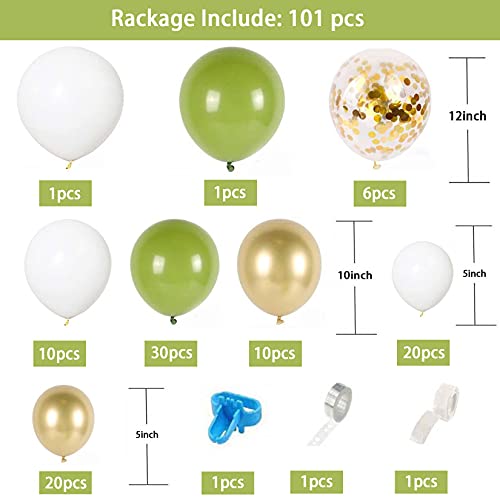 Bellatoi 101Pcs Kit Ghirlanda Palloncino Kit Arco Palloncini Verde oliva per Compleanno Sfondo di Nozze Decorazione per Feste