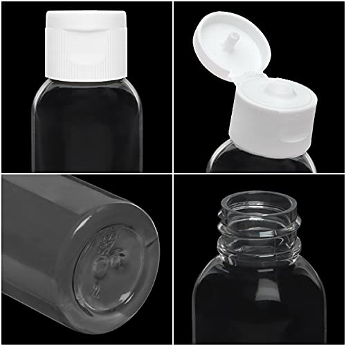 BOTTIGLIE DA VIAGGIO RICARICABILI TRASPARENTI: questo set include 30 flaconi vuoti per cosmetici in plastica PET trasparente da 60 ml. I flaconi da viaggio hanno un'altezza di 11 cm, un diametro inferiore di 3,1 cm. Il diametro dei tappi è di 1,4 cm. Sono realizzate in plastica di alta qualità, senza BPA e parabeni, inoltre sono rispettose dell'ambiente e possono essere riciclate. Le bottiglie plastica riutilizzabili sono atossiche e inodore per la tua comodità.