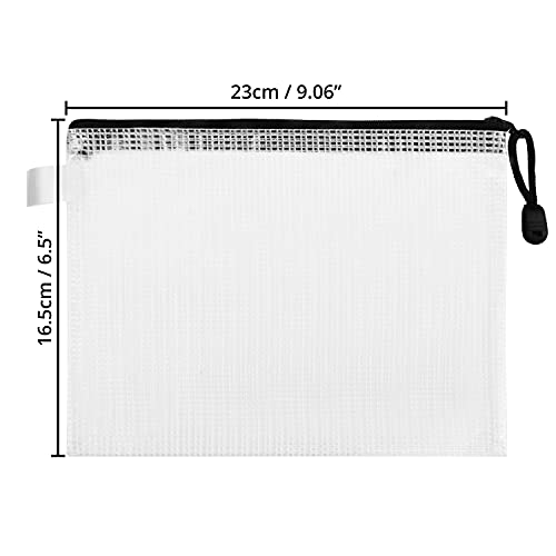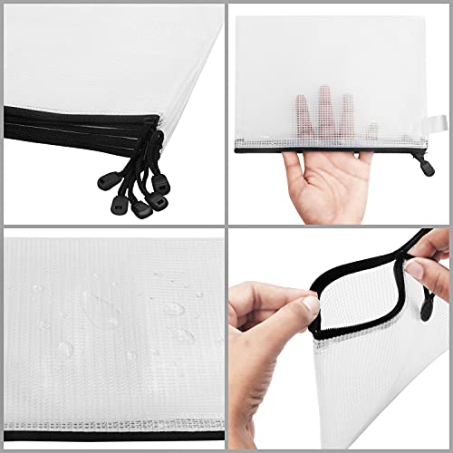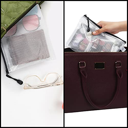 DESIGN SPESSO IN PVC: Il design a griglia dei portadocumenti impermeabile li rende traslucidi in modo da poter vedere i tuoi effetti e trovare facilmente ciò di cui hai bisogno. Sono leggeri ma molto resistenti e le tue cose saranno ben protette da liquidi, sporco e polvere. La cerniera è robusta, facile da usare e non si rompe né si inceppa. Hanno un'etichetta in pelle che puoi usare per attaccare chiavi, penne e altro. Sono morbide e pieghevoli, il che consente di riporle efficacemente.