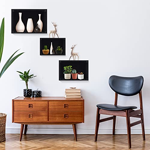 BELLE VOUS Cassette Legno Nere con Manici (3pz) - Cestini Portaoggetti Legno Rustico di Piccole, Medie e Grandi Dimensioni - Scatola Porta Oggetti Decorativa per Casa - Cassetta Legno Grezzo