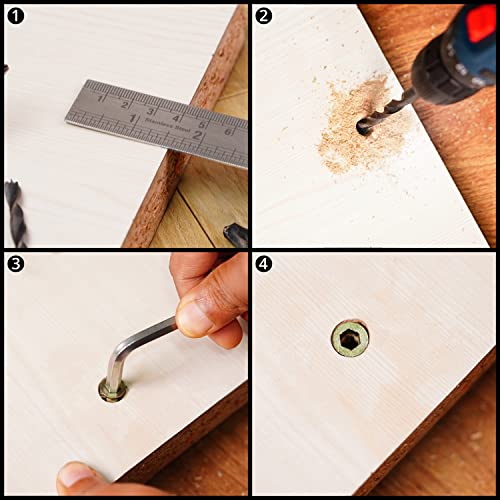 RAPIDA INSTALLAZIONE: Questi inserti esagonali sono incredibilmente veloci e facili da installare. Inizia praticando un foro pilota di dimensioni adeguate nel legno e poi avvitalo usando una chiave esagonale/a brugola. Si consiglia un foro pilota della misura di cui necessiti. Questi inserti legno in zinco sono progettati per fornire un fissaggio ermetico in diversi tipi di legno tenero, inclusi pino, compensato, fibra di legno, MDF e superfici simili. Un kit che ti farà risparmiare tempo.