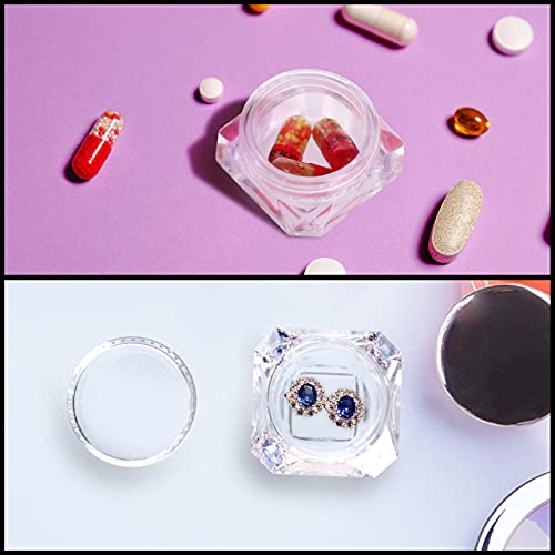 VASETTI PLASTICA CON COPERCHIO PREMIUM: I vasetti piccoli sono realizzati in materiale plastico di alta qualità resistente a rotture, crepe e deformazioni. Il design trasparente consente d'ispezionare rapidamente il loro contenuto. A forma di diamante fuori, le loro pareti interne sono lisce e scendono direttamente dalla bocca del vaso. Sono dotate di coperchi rotondi per una conservazione compatta. Facili da lavare con acqua e sapone, sono riutilizzabili, ideali per uso personale, commerciale.