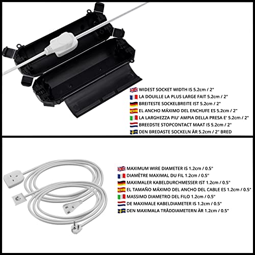 COPERTURA CAVO PROLUNGA: Nel nostro set sono inclusi 4 copri prese di prolunga che misurano 6 x 19 cm. L'interno della muffola elettrica misura 5,2 x 18 cm e viene fornita con un punto di ingresso del cavo su ambo i lati con un diametro di 1,5 cm. Evitare di interrare la copertura e immergerla nell'acqua. Ci sono 8 fascette incluse. Hanno 4 chiusure a scatto, ma è possibile usare le copri prese elettriche attorno alle coperture protettive dei cavi per una maggiore sicurezza.