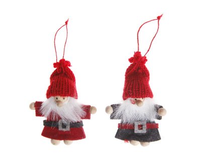Sass & Belle, 2 decorazioni in feltro da appendere sull'albero di Natale, forma: Babbo Natale, colore rosso e grigio, 6 x 5 cm