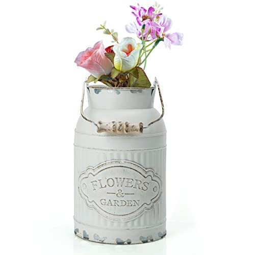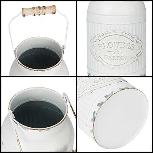 Belle Vous Vaso Fiori Rustico in Metallo Bianco - D12,8 x H20,5 cm - Secchiello Latta per il Latte Vintage Shabby Chic Zincate - Brocca Decorativa per la Casa/Matrimonio e Vasi Fiori da Giardino