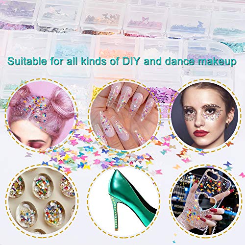 Belle Glitter Farfalla Chunky Sparkle Glitter per Corpo Viso Occhi Unghie Capelli per musica Festival MasqueradeParty 24 Colori