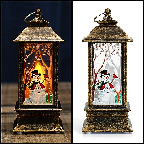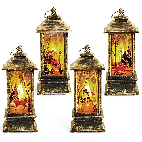 BELLE VOUS 4 Pezzi Lanterna LED Vintage Natalizia - Lanterne Natalizie Senza Fuoco da Appendere - Lampada Esterno/Interno Decorata con Babbo Natale, Pupazzo di Neve e Alce - A Batterie