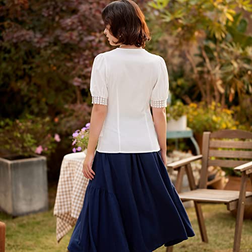 Belle Poque Camicia Donna Elegante Estate Autunno Slim Fit Scollo a V a Maniche Corte a Sbuffo Classico Nero BP389-1 M