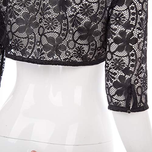 Belle Poque Donna Coprispalle Elegante Cerimonia in Pizzo Floreale Scollo con Un Bottone Bolero Manica 3/4