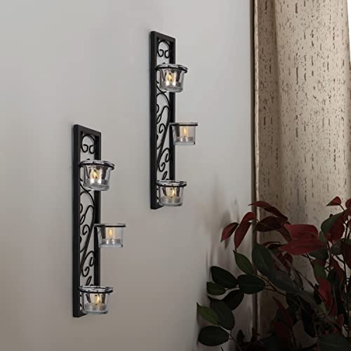 Belle Vous Portacandele da Parete in Ferro Nero da 2 Pezzi - H35,2 cm Porta Candele Montato - Colonna Portacandele da Appendere per Soggiorno, Bagno, Sala da Pranzo e Decorazioni per Matrimoni