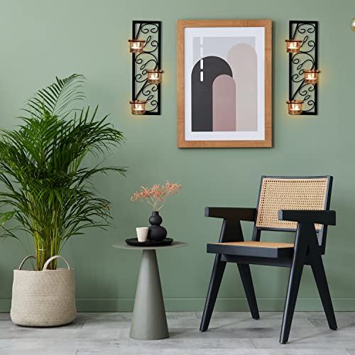 COPPIA DI APPENDIABITI: Il nostro set di 2 applique da parete in ferro nero è perfetto per illuminare la tua casa. Ogni applique misura L10,5 x H35,2 cm e ha 3 sezioni portacandele con un diametro di 5,6 cm. Le nostre decorazioni parete metallo sono adatte per la maggior parte dei tipi di portacandele. Metti le tue candele, luci a LED senza fiamma e le candele votive o a colonna all'interno di un supporto e sulla nostra applique per un look straordinario e accattivante.