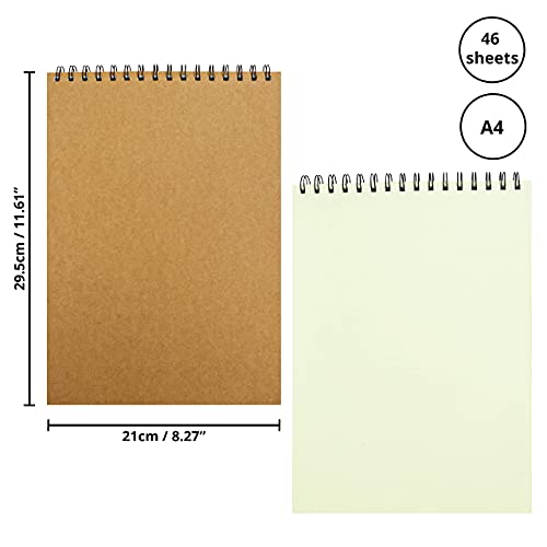 BELLE VOUS 2pz Quaderni Carta Riciclata Block Notes A4 Rilegatura a Spirale con 46 Fogli da 128g mq Quaderno Appunti 21 x 29,5 cm - Quaderno Fogli Bianchi Acqua Blocco Appunti per Disegno e Pittura