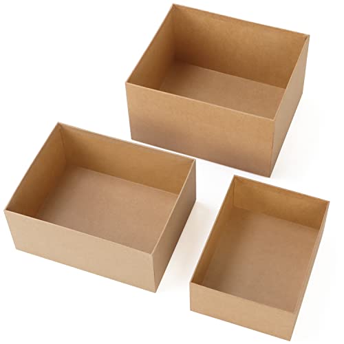 BELLE VOUS 3pz Scatole Cartone con Coperchio - Dimensioni Piccole, Medie e Grandi - Scatola Regalo con Coperchio Impilabili Rettangolari Marrone per Gioielli, Cosmetici, Regali, Accessori ed Arte
