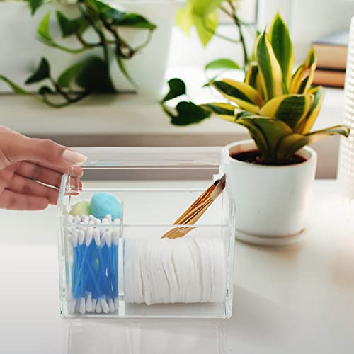 BELLE VOUS 3 Scomparti Porta Oggetti per Bagno a con Coperchio - Scatola Plastica Acrilica Trasparente - Makeup Organiser, Cotton Fioc, Dischetti Struccanti e Assorbenti