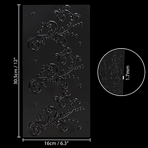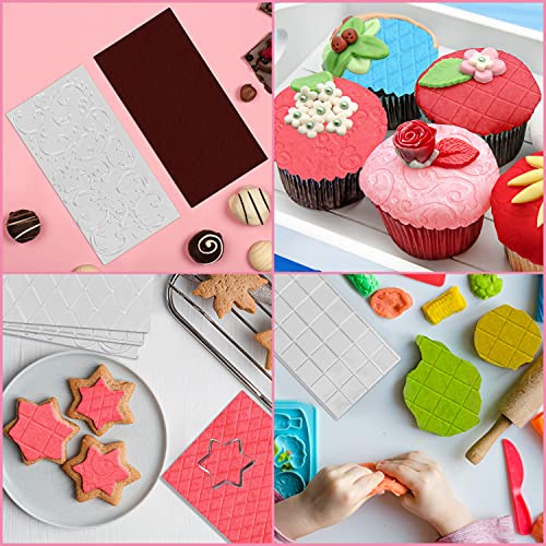 FOGLI PER GOFFRATURA: Inclusi nel nostro set dolci cucina ci sono 8 fogli di plastica per stampi dolci e glassa. Ogni foglio misura 30,5 x 16 cm. Gli stampi per torte hanno uno spessore di 1,7 mm. Ci sono 8 design per set i quali imprimeranno i motivi sulla tua glassa. Sono sicuri per alimenti, atossici, facili da pulire e lavabili in lavastoviglie. Sono realizzati in plastica flessibile, molto più solida del silicone, ma può comunque piegarsi leggermente.