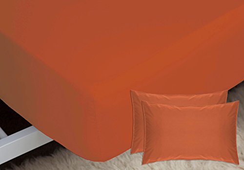 Belledorm - Lenzuolo con angoli, compresa federa abbinata, in percalle da 200 fili, spessore materasso: 28 cm, Terracotta, Doppio