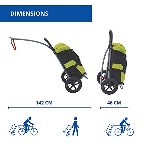 Come carrello per bicicletta o grazie al timone è utilizzabile anche come borsa per la spesa pieghevole