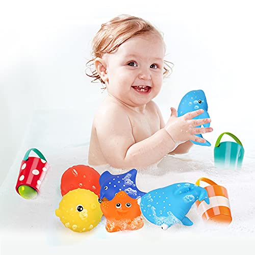 【Materiale Sicuro e Durevole】- Il giocattolo da bagno è realizzato in materiale ecologico sicuro, non tossico, resistente e non sbiadisce. Ha una superficie liscia con un design arrotondato e nessuna piccola parte fornirà la massima sicurezza per i tuoi bambini. È anche un ottimo giocattolo interattivo per genitori e bambini.