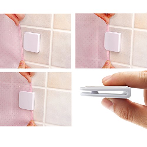 BelleStyle Clip per Tende da Doccia, 4 Pezzi Fodera per Doccia autoadesiva paraspruzzi Antivento per Proteggere Le Clip Accessori per Il Bagno-Bianco