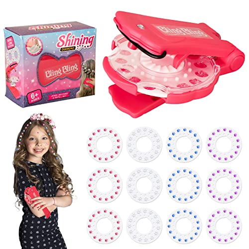 【Set di accessori per capelli】Questo è uno strumento di styling glamour per ragazze, che può far brillare all'istante le piccole principesse di 6-12 anni. tra cui 1 pezzo di macchina per capelli con strass, 180 pezzi di diamanti colorati, ci sono 4 tipi di colori. Queste gemme colorate e scintillanti possono aiutare ad aggiungere brillantezza ai look dei bambini. Lascia che i bambini brillino a un appuntamento o a una festa.