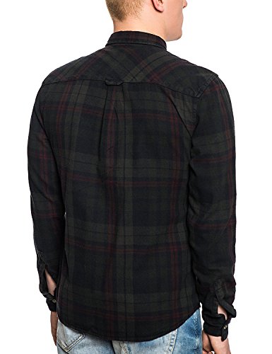 Bellfield - Camicia da uomo a quadretti, in flanella, con bottoni, a scacchi, colore: Blu navy