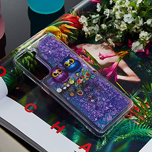 Bellissima Glitter Cover Compatible per Samsung Galaxy S21 FE Custodia Bumper Custodie Scintillio Della Scintilla Stelle Spessa Proteggere Trasparente Silicone Cover per Samsung S21 FE,Fiore e Gufo