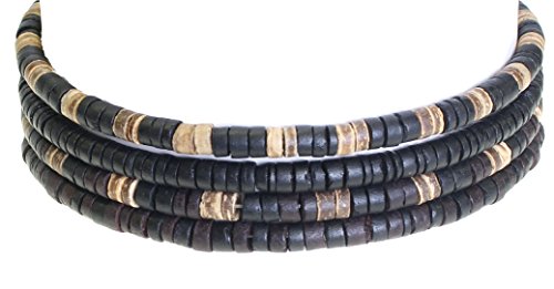 Bellissimo set di braccialetti o collane a girocollo, con tasselli in legno di cocco, in stile surf, colore: Choker Set - Style B, cod. NG
