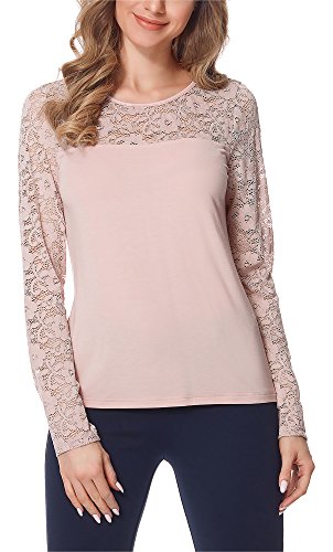Bellivalini Blusa Maglia in Pizzo Donna BLV50-132 (Rosa Polvere, L)