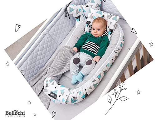 Bellochi Riduttore Lettino per Neonato, Riduttore per Culla - Antisoffoco, Cotone e Velluto, OEKO-TEX - Cuscino Riduttore, Cocoon a Baby, Baby Nest - 90 x 60 cm (Lux)