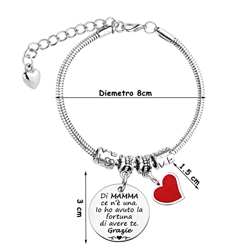 Regalo per mamma——Sul bracciale mamma è incisa una frase: Di mamma ce n'e una. Io ho avuto la fortuna di avere te. Grazie. Mostra alla mamma quanto la amiamo regalando questo braccialetto alla mamma come compleanno, festa della mamma, ringraziamento o regalo di Natale.