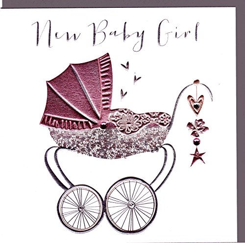 Belly Button Designs Paloma, BB351, Cartoncino di nascita “New Baby Girl” con stampo a rilievo e cristalli Un biglietto di alta qualità e originale per la nascita, anche per buono regalo o soldi. bb307