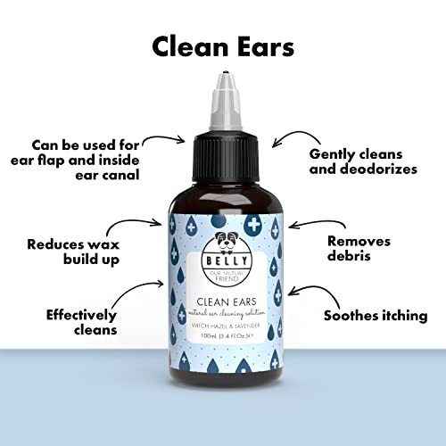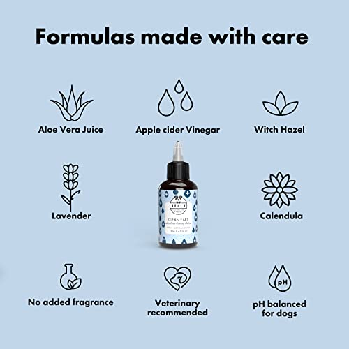 Belly Detergente Orecchie Cane con Aloe Vera - 100ml - Detergente per Pulizia Orecchie Cane, Scioglie Lo Sporco e Il Cerume - PH Equilibrato - Comoda Alternativa a Cotton-Fioc e Gocce Orecchie Cane