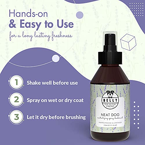BELLY Profumo Cane Dolce e Intenso - Profumo per Cani Lunga Durata - Spray Deodorante Cane, Nutre il Pelo ed Elimina Odori - Spray Deodorante per Cani Idratante e Rinfrescante - Formula Vegana, 250 ml (Pompelmo e Lavanda)