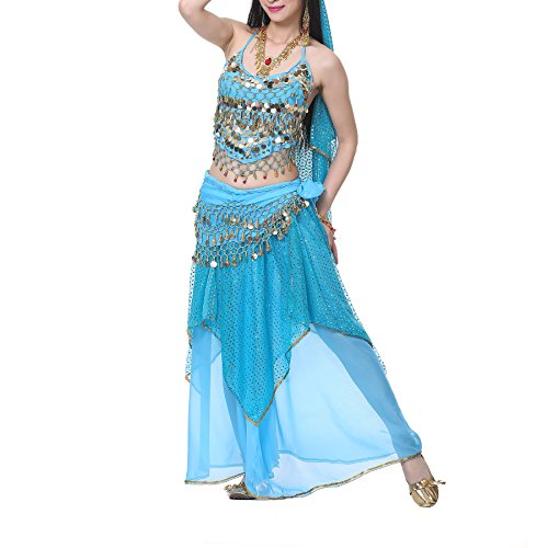 BellyLady Danza del Ventre Sciarpa All'anca 158 Monete D'oro Gonna da Ballo Rosa