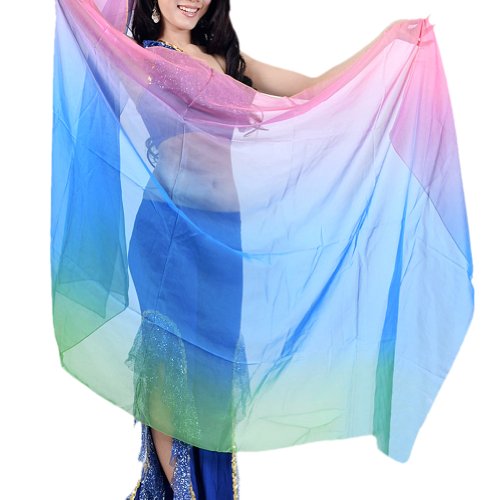 Bellylady sciarpa per la danza del ventre in chiffon veil per danzatrici, blu/verde/rosa
