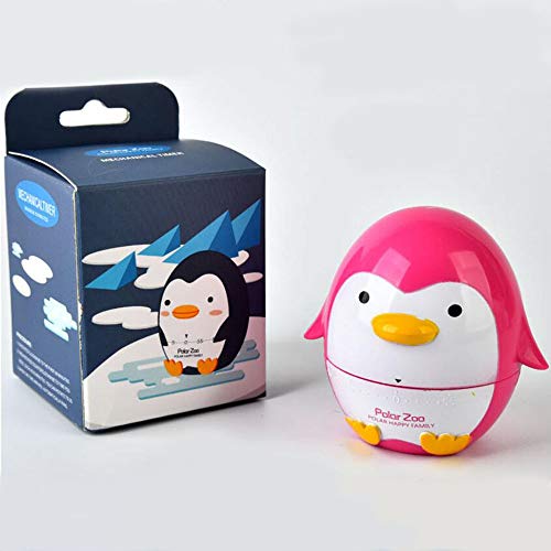 Belons - Timer da cucina 60 minuti a breve termine pinguino, timer meccanico meccanico per uova con cronometro manuale, colore: Rosso