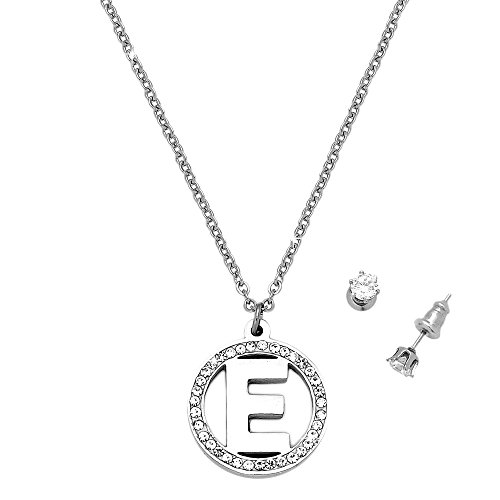 Beloved ❤️ Parure donna collana e orecchini acciaio inossidabile e cristalli con lettera iniziale - punto luce - lunghezza regolabile (E)