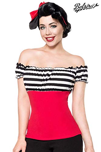 Camicetta retrò con spalle scoperte, arricciatura sul petto con maniche corte