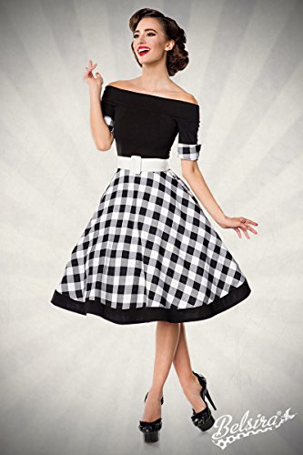 Belsira Schulterfreies Swing-Kleid Donna Abito Media Lunghezza Nero/Bianco 3XL