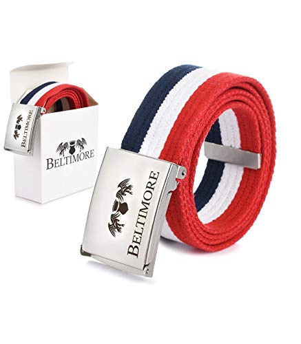 BELTIMORE Cintura da uomo in tessuto larga 3,7 cm, spessore ca.1 mm | 100% cotone con chiusura in metallo e punta in metallo | Forma sportiva ed elegante, aspetto tricolore