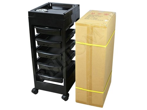 Carrello Professionale per parrucchieri ed estetiste, con 5 cassetti utilizzabili nella struttura centrale o agganciati sul piano superiore come veloci e comodi contenitori.