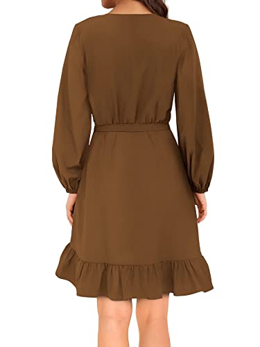 Beluring Abiti da Donna Abito Corto A Maniche Lunghe con Scollo A V E Volant Marrone XXL