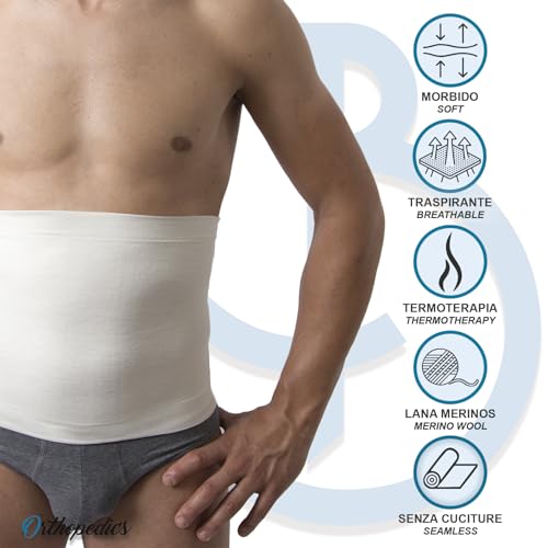 Beman 556 - Pancera in Lana Merinos e Cotone sulla Pelle Uomo Donna Contenitiva, Termocintura Scalda Pancia, Fascia Lombare Elastica, Supporto Schiena Anallergica H.27cm (Bianco, 3/L)