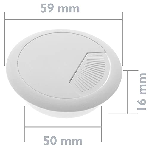 BeMatik - Confezione da 20 passacavi Rotondi per incastrare in Tavolo e scrivania Colore Bianco Diametro 50 mm