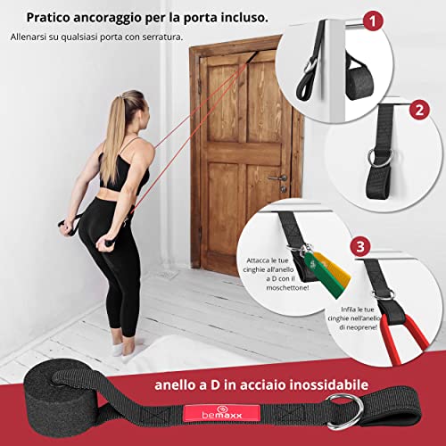 BeMaxx Set di Fasce di Resistenza + Piano allenamenti - Kit Elastici: 5 Bande Elastiche Lattice, Maniglie, Cinghie per Caviglie + Ancoraggio, Gancio da Porta | Tubi Fitness Palestra Sport Stretching